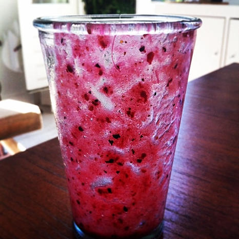 Een smoothie is het ideale ontbijt als je weinig tijd hebt. Je gooit wat bij elkaar in de blender of staafmixer en drinkt het op terwijl je je tas inpakt. Of voor de extreem haastige momenten gaat het ook prima in een plastic flesje mee op de fiets. Wel handig, want je begint je dag toch met een voedzaam en heel lekker (drink)ontbijtje. Of, als je wel tijd hebt, ook fijn om van te genieten met een kop groene thee met citroen. Ik heb er inmiddels heel wat uitgeprobeerd, maar dit is toch wel een blijvertje.. Lekker koud met zomerfruit en romig door de banaan.