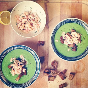 Wat ik bijna altijd in de vriezer heb liggen is zo’n pakje diepgevroren tuinerwtjes. Ik vind mezelf altijd erg hollands, als ik ze zie liggen. Waarom eigenlijk? Meestal vinden ze hun weg (last-minute) in een risotto. Ook dit keer was het geen hollands glorie maar een Italiaanse groenten- en vismarkt die me inspireerde tot deze soep, met een hoofdrol voor de erwtjes en roze garnalen. Als je een vrolijk en fris ogend soepje op tafel wilt zetten ben je hier aan het goede adres :).